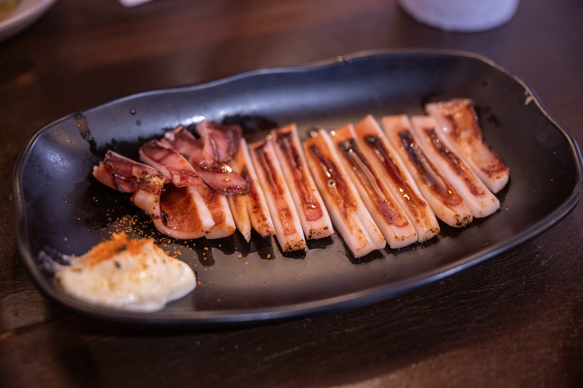 Was able to walk in at 7 on a Thursday. Found this spot thru TikTok. We got the ribeye, grilled squid, eel over rice, and the Japanese mackerel. Everything was cooked so well!! Probably the best cooked squid I’ve ever tried, not rubbery at all. Try the yuzu chu-hi or share a pitcher of kirin like we did. We also got a complimentary cotton candy at the end that you get to make. We got all this and spent under 100 before tip.